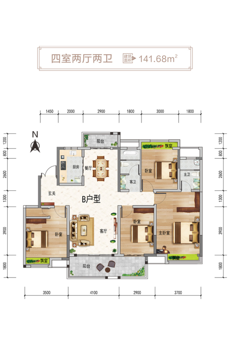 B户型-4室2厅2卫-141.68㎡