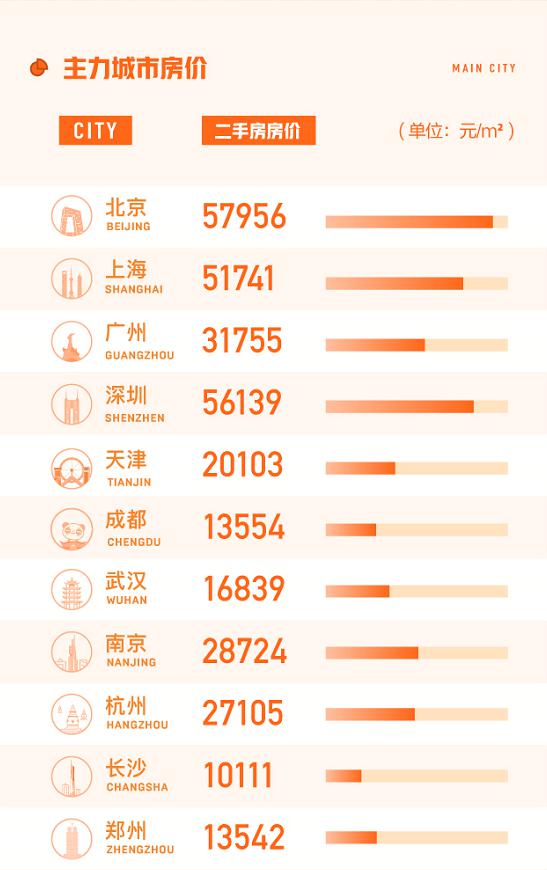 《8月国民安居指数报告》统计显示,8月全国67个主要城市二手房挂牌均价为15683元/平方米,环比上涨0.55%,有48城二手房挂牌均价环比上涨。其中,北京、深圳、上海二手房挂牌均价均稳定在5万元/平方米以上,其中北京57956元/平方米的水平依旧位列排名前列,深圳和上海分别以56139元/平方米和51741元/平方米紧跟其后。
