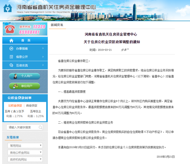 河南省直住房公积金贷款政策有变动 较高可贷80万